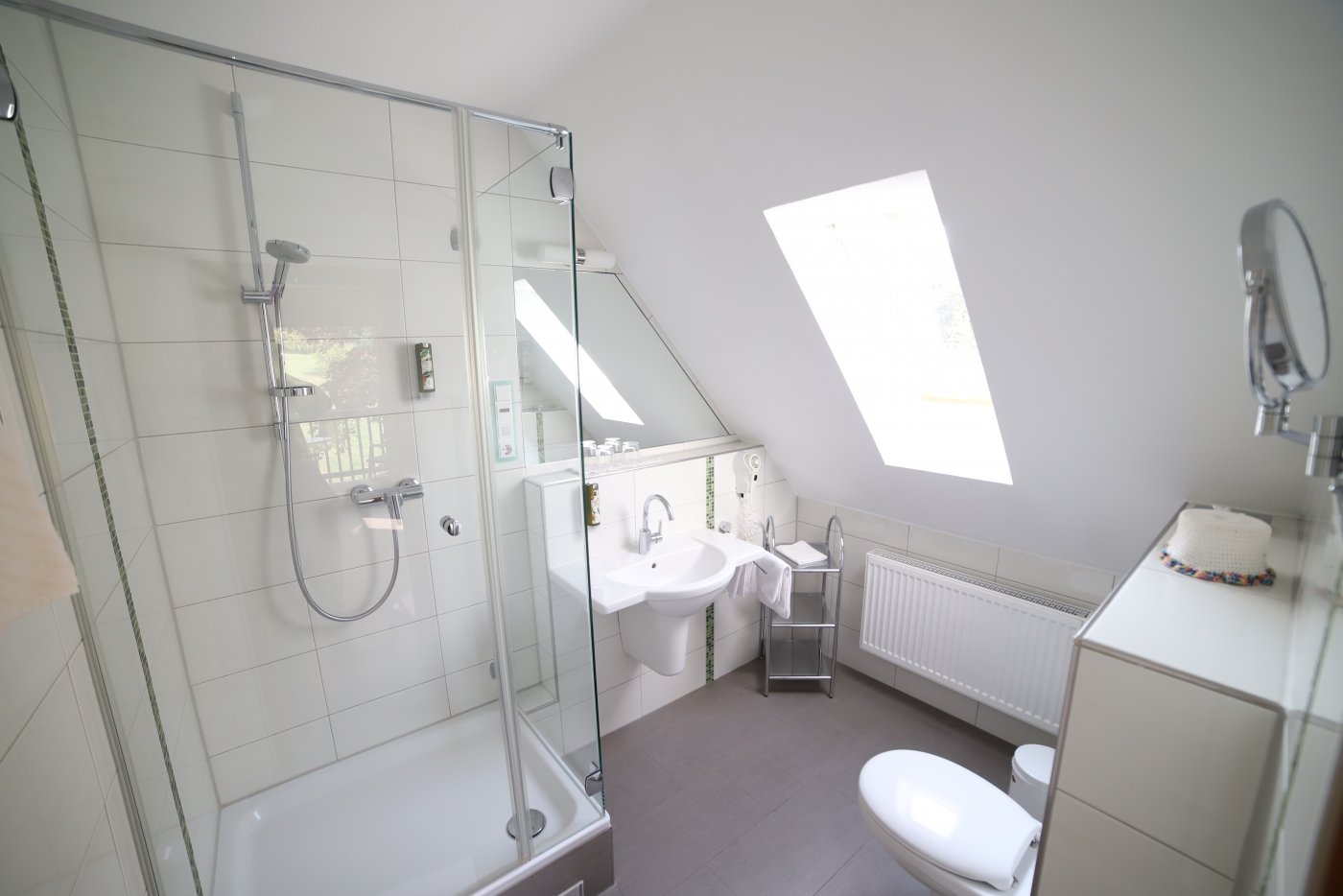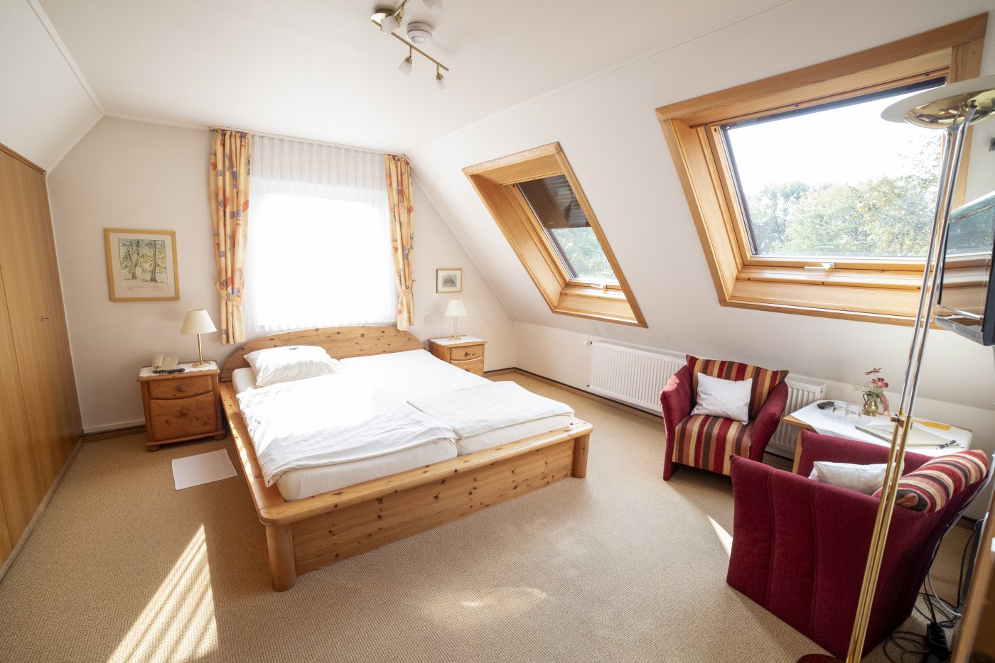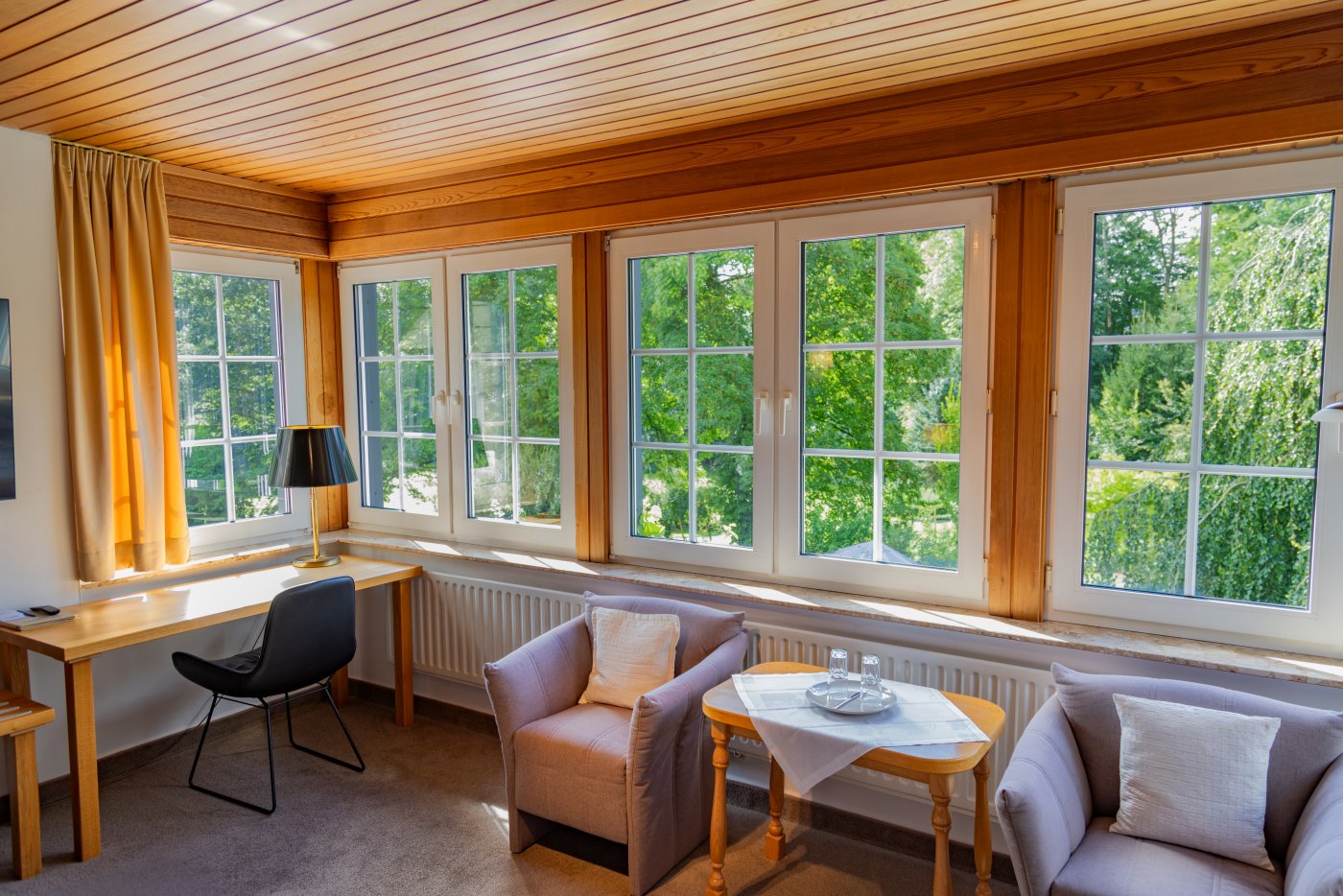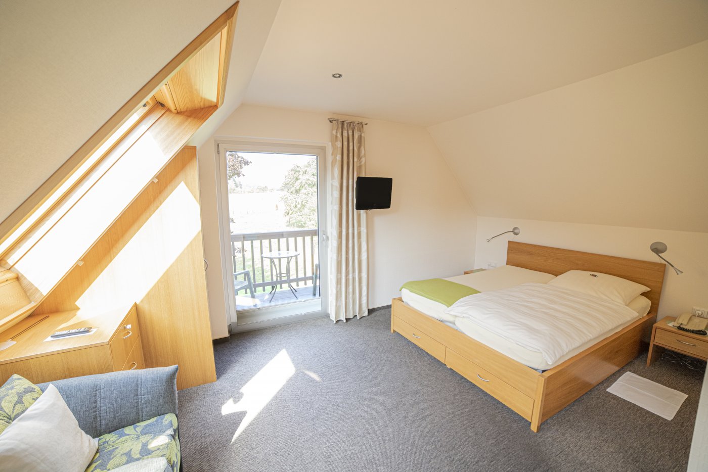 Schon beim Betreten unserer Zimmer werden Sie feststellen, dass der erste Blick aus dem Fenster Ihre Aufmerksamkeit auf sich zieht. Die Sicht in den herrlichen Garten und die grüne Landschaft um unser Haus ziehen jeden in den Bann. Unsere Zimmer sind gemütlich gestaltet und sind alle mit Bad und/oder Dusche, Fön, Kosmetikspiegel und einem eigenen WC ausgestattet. Sie haben einen Flachbildschirm, WLAN-Empfang, einen Schreibtisch und eine Sitzecke. Bis auf sehr wenige Ausnahmen, haben die Zimmer entweder einen Balkon oder eine eigene Terrasse.